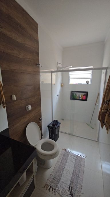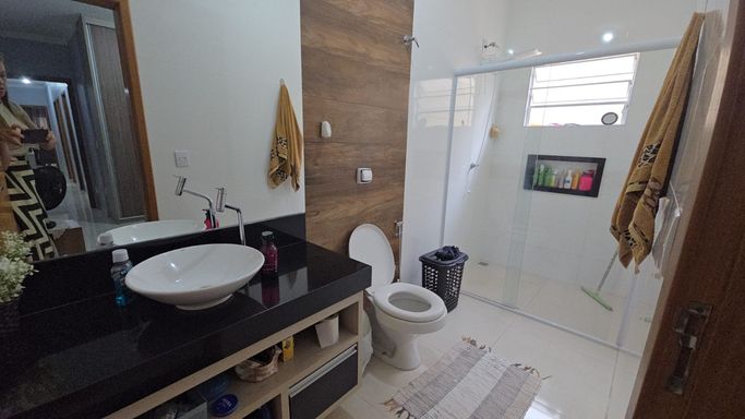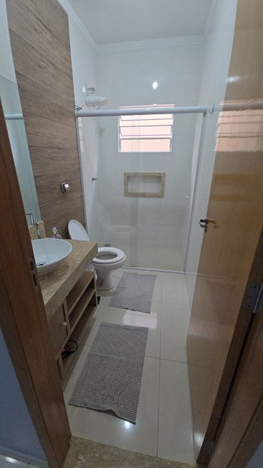 👉🏼 Banheiro social com box de vidro e armários